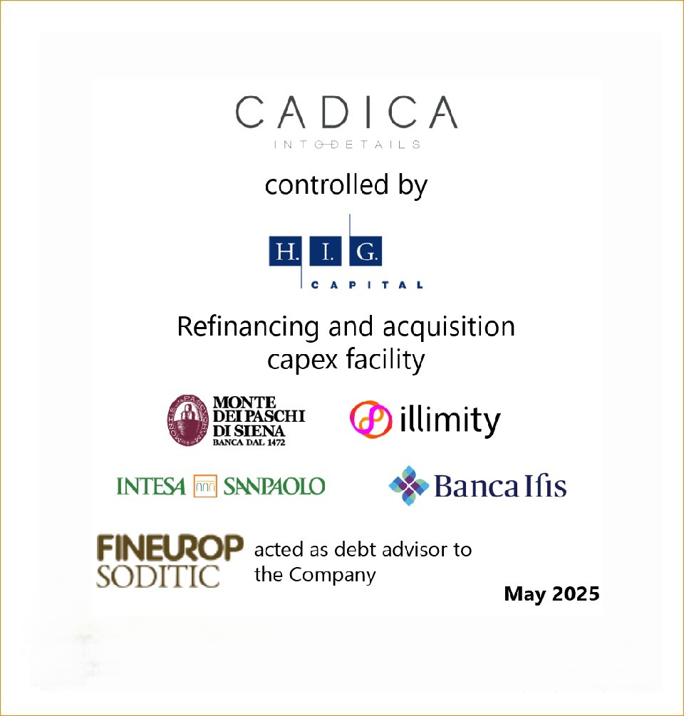 Fineurop Soditic acted as debt advisor to Cadica S.r.l., a company controlled by H.I.G. Capital.