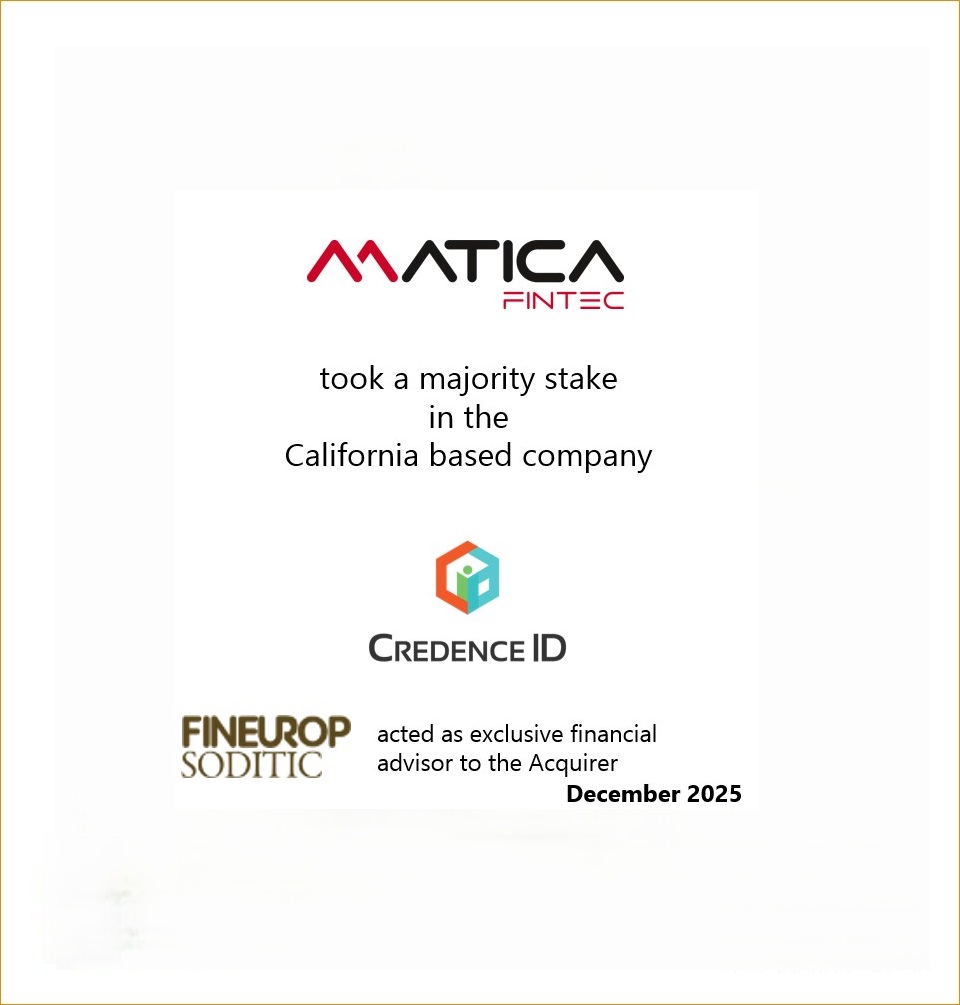 Fineurop Soditic ha agito in qualità di advisor finanziario esclusivo per Matica Fintec S.p.A. nell’acquisizione del 51% del capitale sociale di Credence ID.