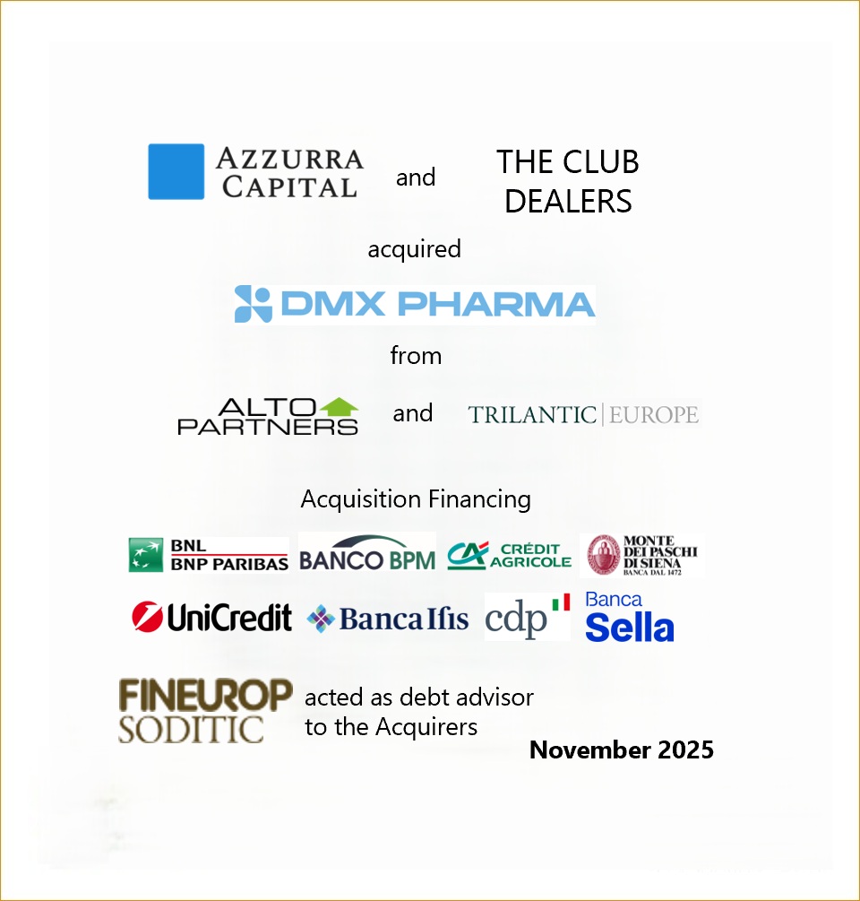 Fineurop Soditic ha agito in qualità di debt advisor di Azzurra Capital e The Club Dealers nell’acquisizione del 100% di Domixtar Pharmaceutical (DMX) dai fondi Alto Partners e Trilantic Europe.